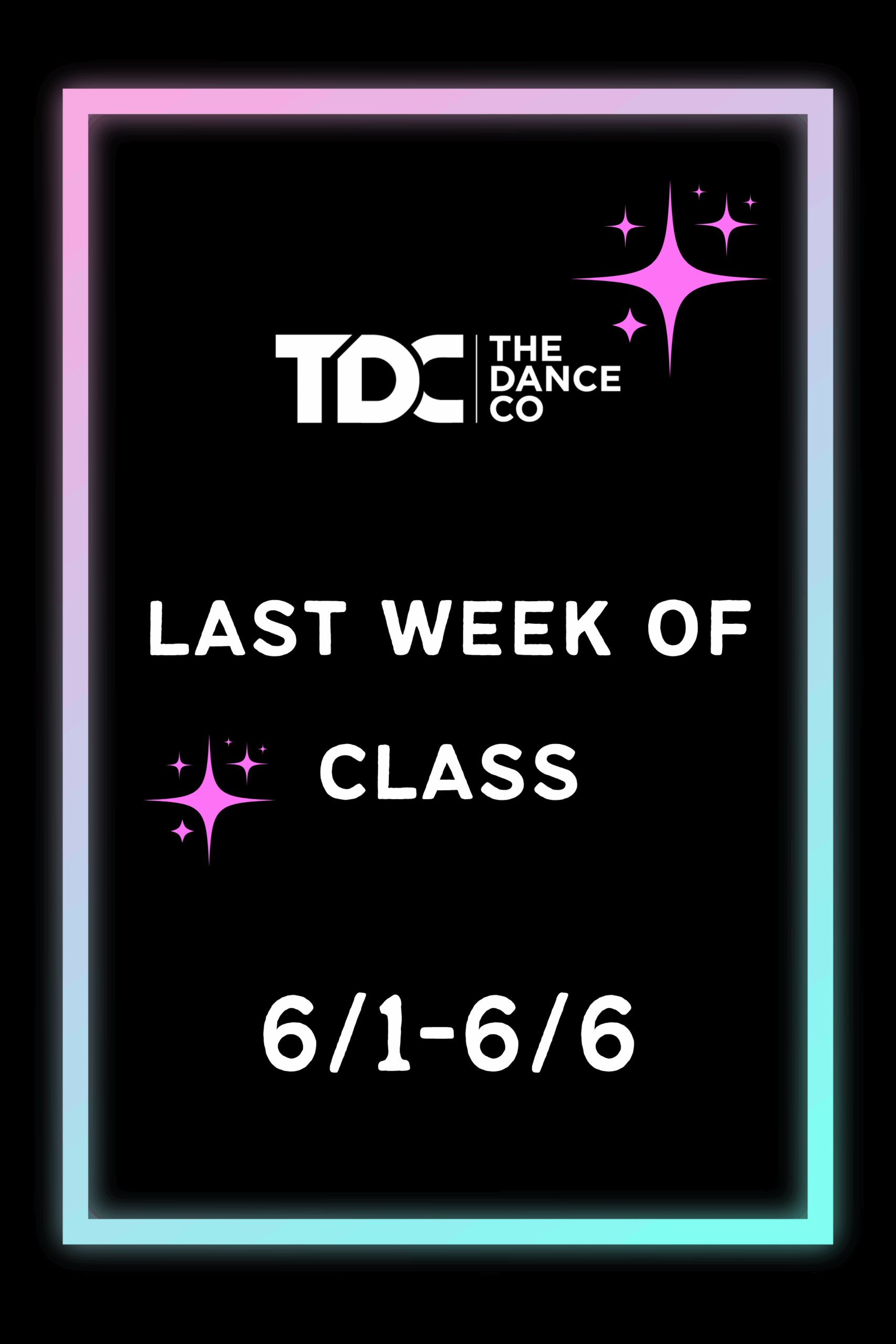 The last week of classes for the 2025/2026 season will be June 1st through 6th! This week will be TDC Spirit Week!